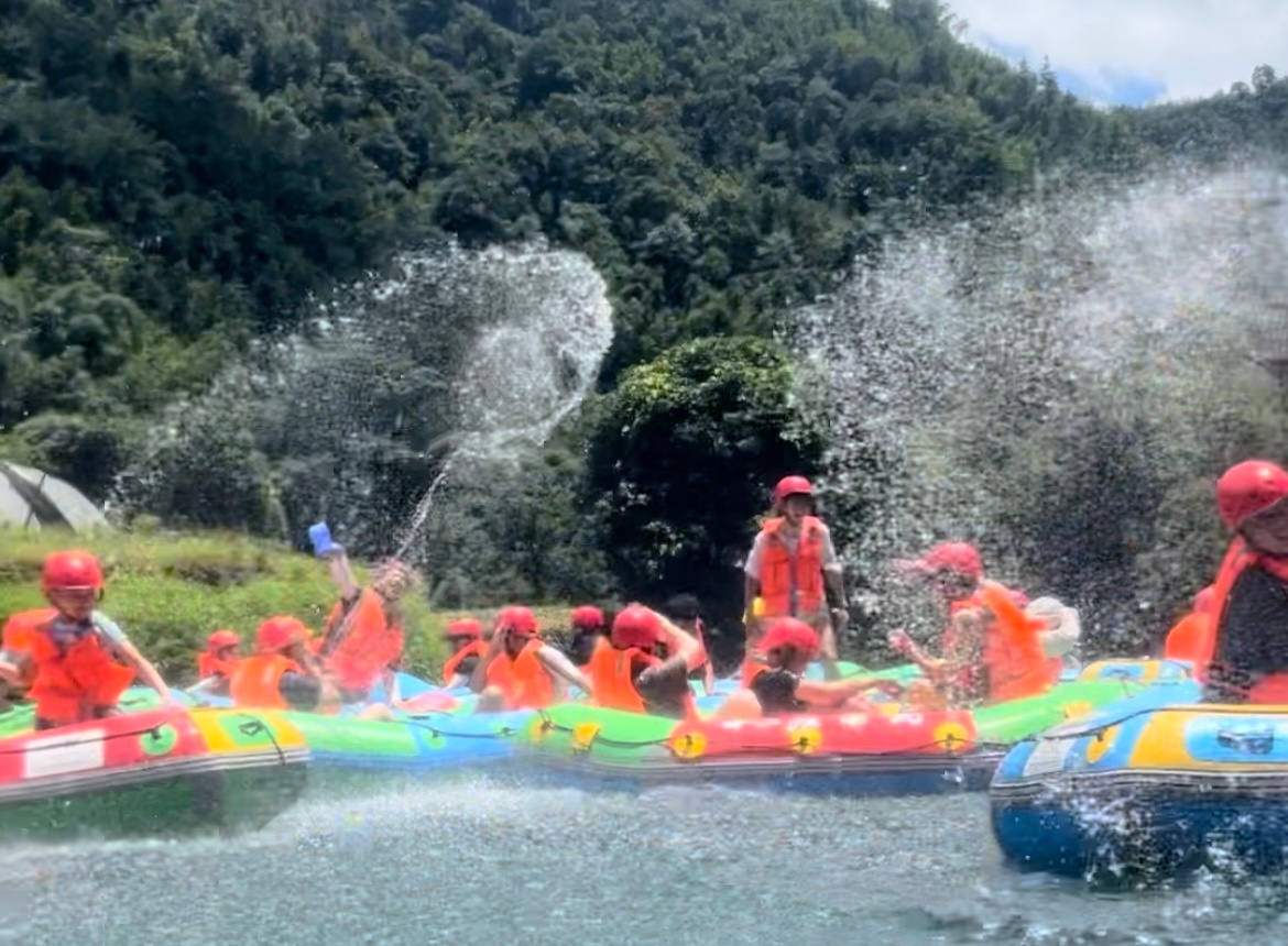 两岸的青山绿树快速向后退去,仿佛在为我们加油助威。在这场激情与清凉的碰撞中,我们忘却了一切烦恼,尽情享受着漂流带来的乐趣。