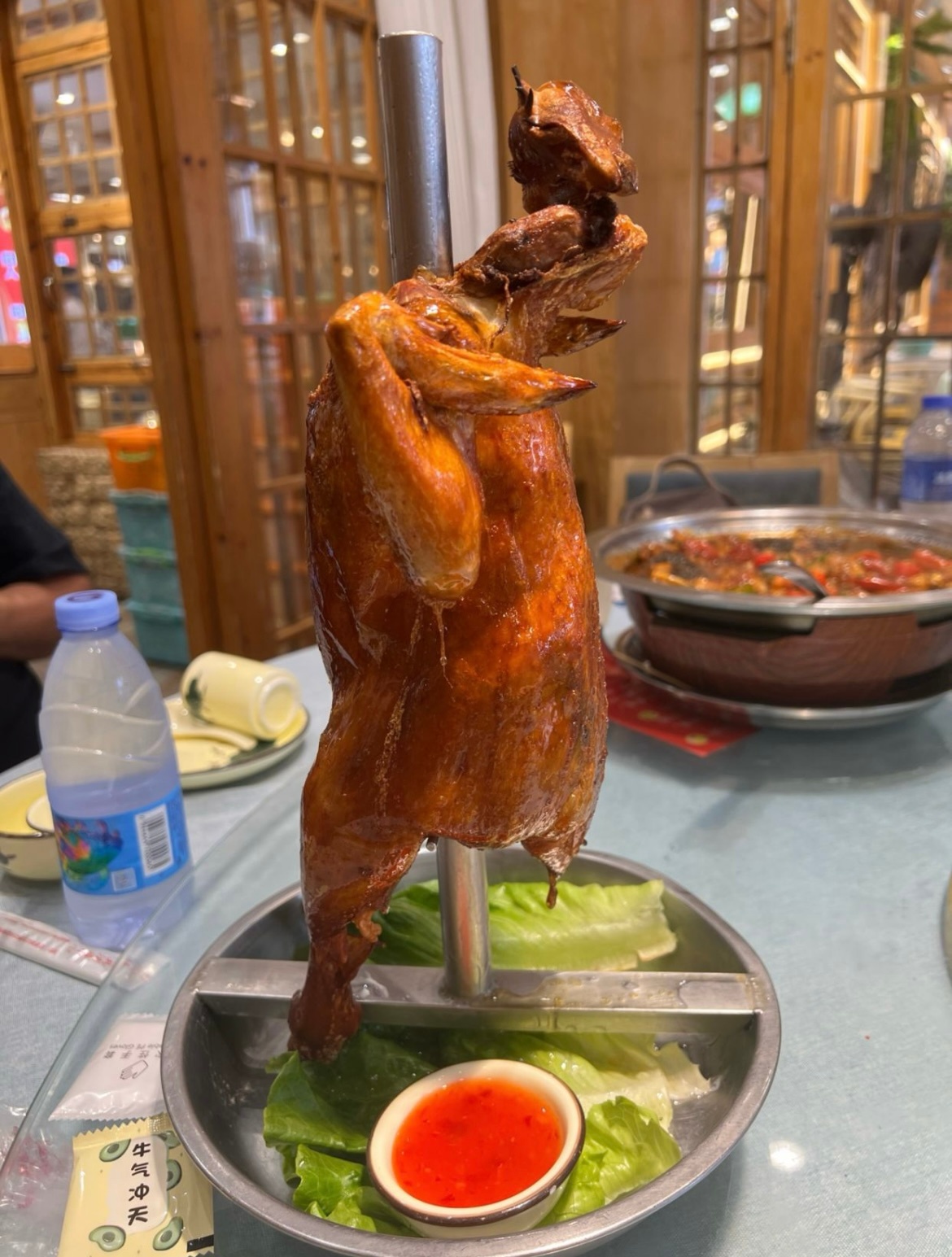 钢管瑶山鸡更是视觉与味觉的双重享受,整只鸡架在钢管上炭火慢烤,外皮烤得金黄酥脆,撕开时肉汁顺着纤维流淌,肉质紧实不柴。
