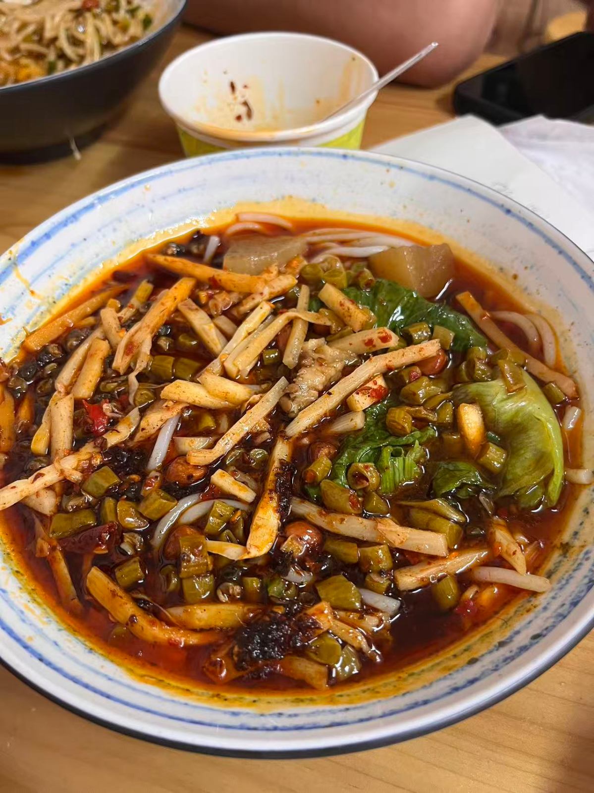 桂林米粉——提前熬制 8 小时的鲜醇卤水,裹着 Q 弹爽滑的米粉,再码上酥脆的锅烧肉、酸香的酸豆角,最后浇一勺滚烫的骨汤,大家低头嗦粉的瞬间,只剩下满足的 “吸溜” 声,连碗底的汤汁都要喝完才肯放下筷子。