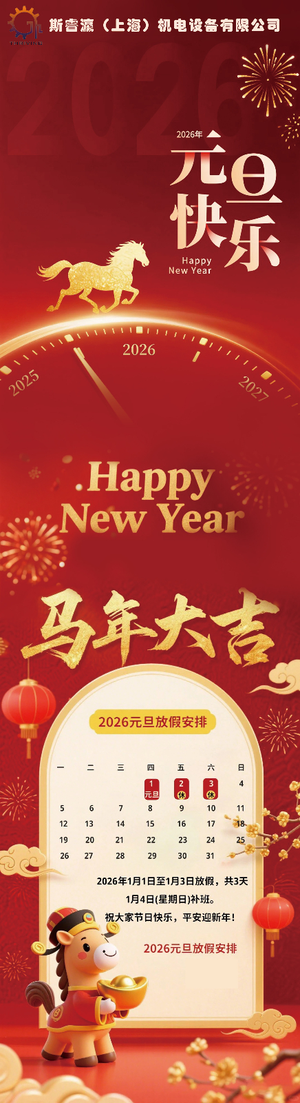 诚信 | 创新 | 专注品质 联系我们 获取报价 寻求服务,配件或技术支持 文档库 新年贺词 | 斯睿瀛(上海)机电设备有限公司全体员工祝大家 2026 马踏新元,岁启华章! 2025-12-31 12:55 分享到: 上一篇:家国同庆,月满人圆 | 斯睿瀛(上海)机电设备有限公司中秋国庆双节欢聚 下一篇:岁末相聚,共赴美好!斯睿瀛(上海)机电设备有限公司年会圆满落幕,欢乐与荣耀齐飞✨